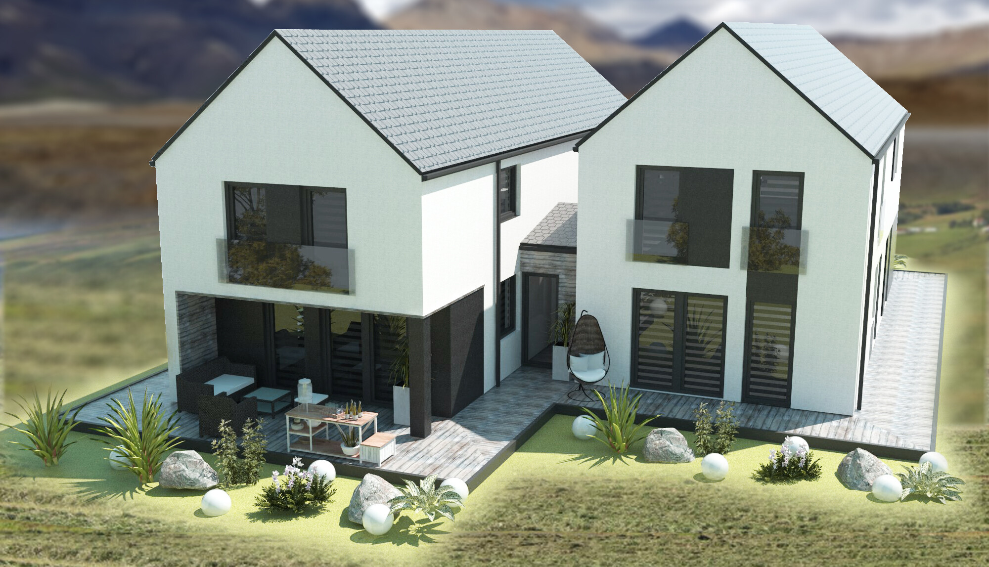 Kompleks budynków mieszkalnych z garażem dwustanowiskowym.