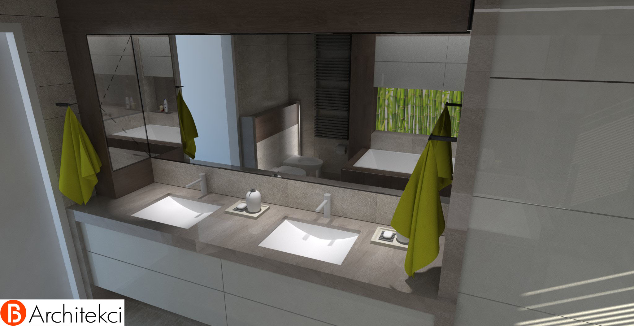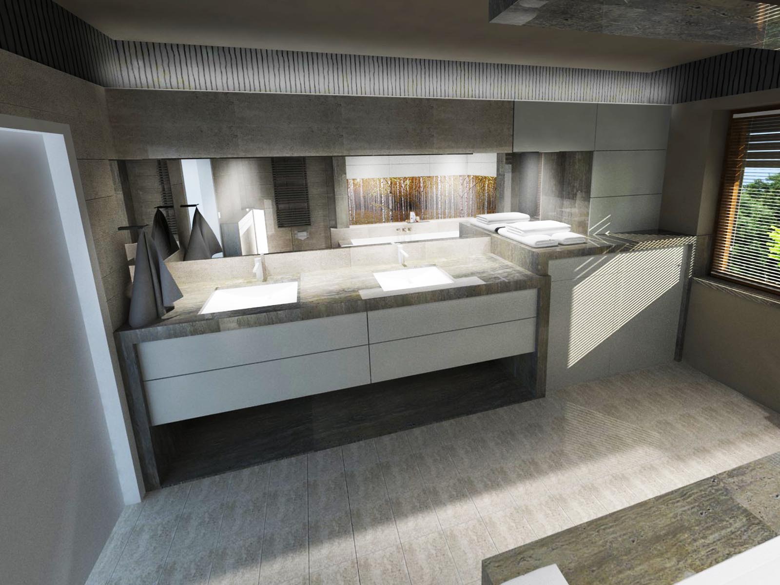 Projekt wnętrza łazienki zlokalizowanej na pierwszym piętrze budynku mieszkalnego, jednorodzinnego. Przestrzeń służąca zaspokojeniu codziennych potrzeb czteroosobowej rodziny. Zagospodarowano pomieszczenie o powierzchni ok. 11.1m2 .Wyposażenie to dwie umywalki, wanna z natryskiem, miska ustępowa z bidetem, zabudowa z pralką.