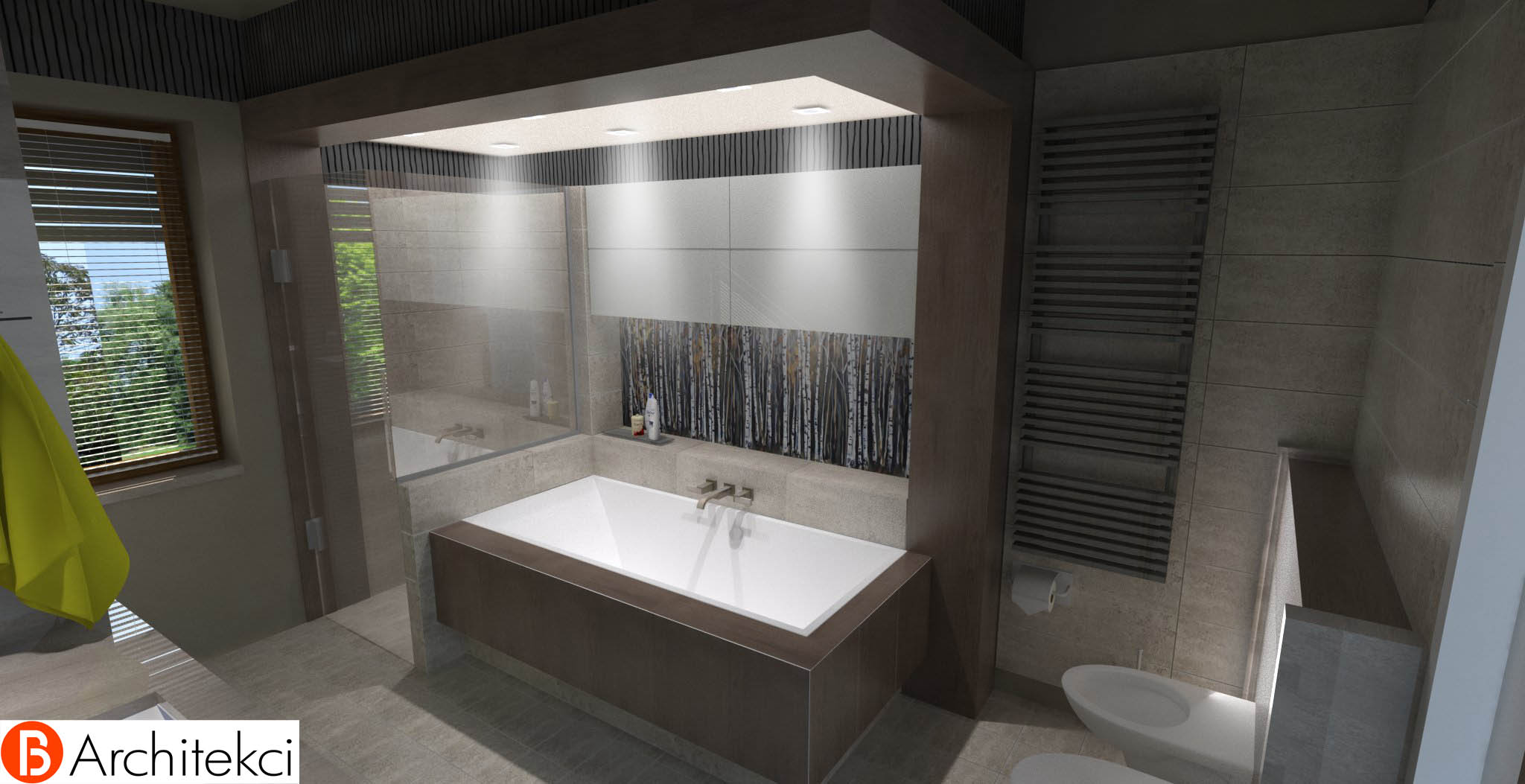 Poniżej prezentujemy krótką schematyczną animację wnętrza łazienki, Dalej rzut, rozmieszczenie oświetlenia i rozwinięcia poszczególnych ścian.