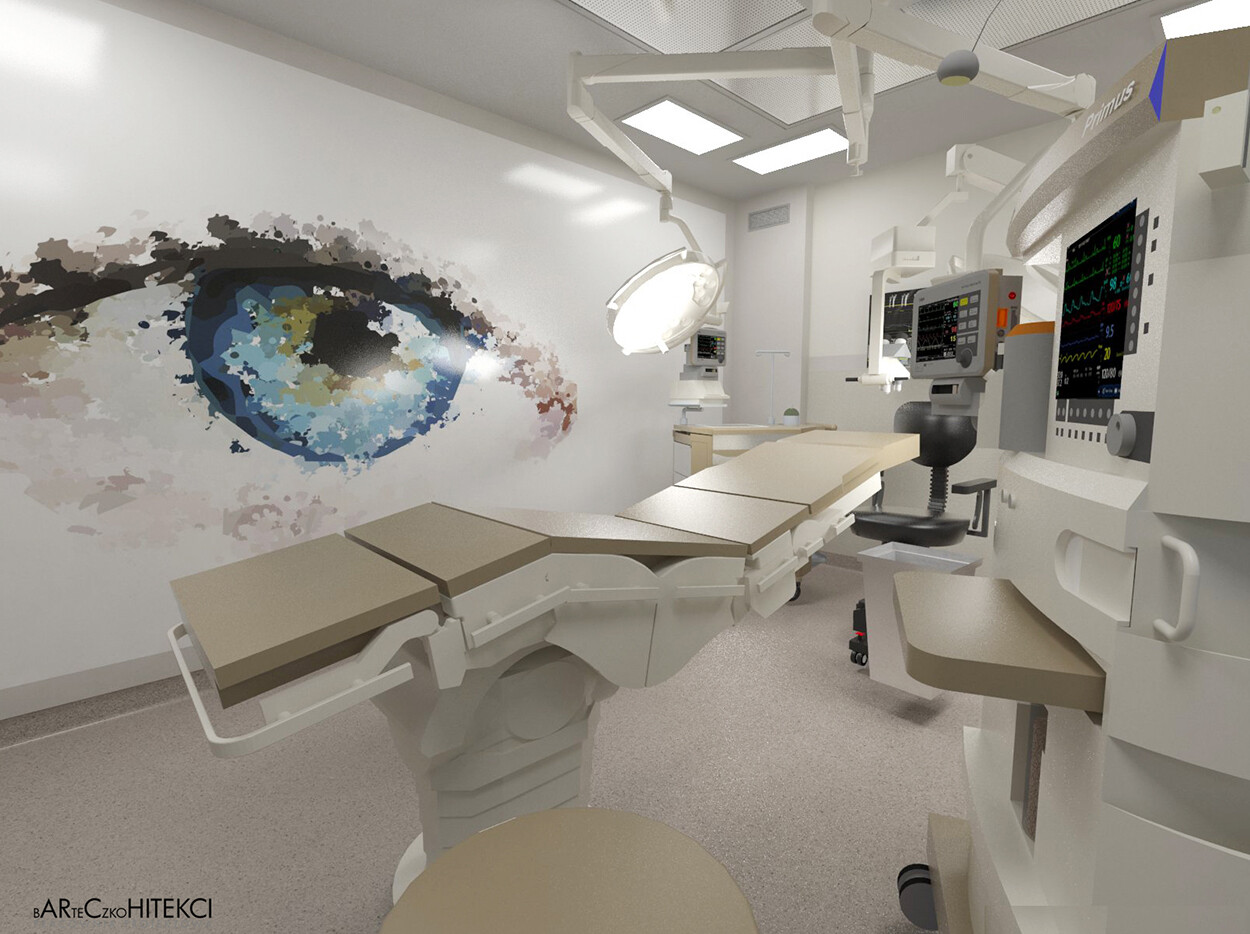 Projekt wnętrz sali operacyjnej oddziału okulistyki w Opolu. Poniżej prezentujemy kilka zdjęć sali operacyjnej, w której zaprojektowana została tematyczna fototapeta.